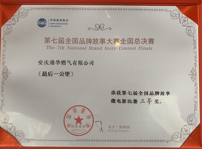 日前,由中國質(zhì)量協(xié)會主辦、中國質(zhì)量協(xié)會品牌分會協(xié)辦的2019年品牌創(chuàng)新大會暨第七屆全國品牌故事大賽全國總決賽,在北京成功舉辦。安慶港華選送微電影作品《最后一公里》榮獲全國品牌故事微電影比賽三等獎,選送演講作品《黃梅故里,港華心曲悠揚》榮獲全國品牌故事演講比賽優(yōu)勝獎。