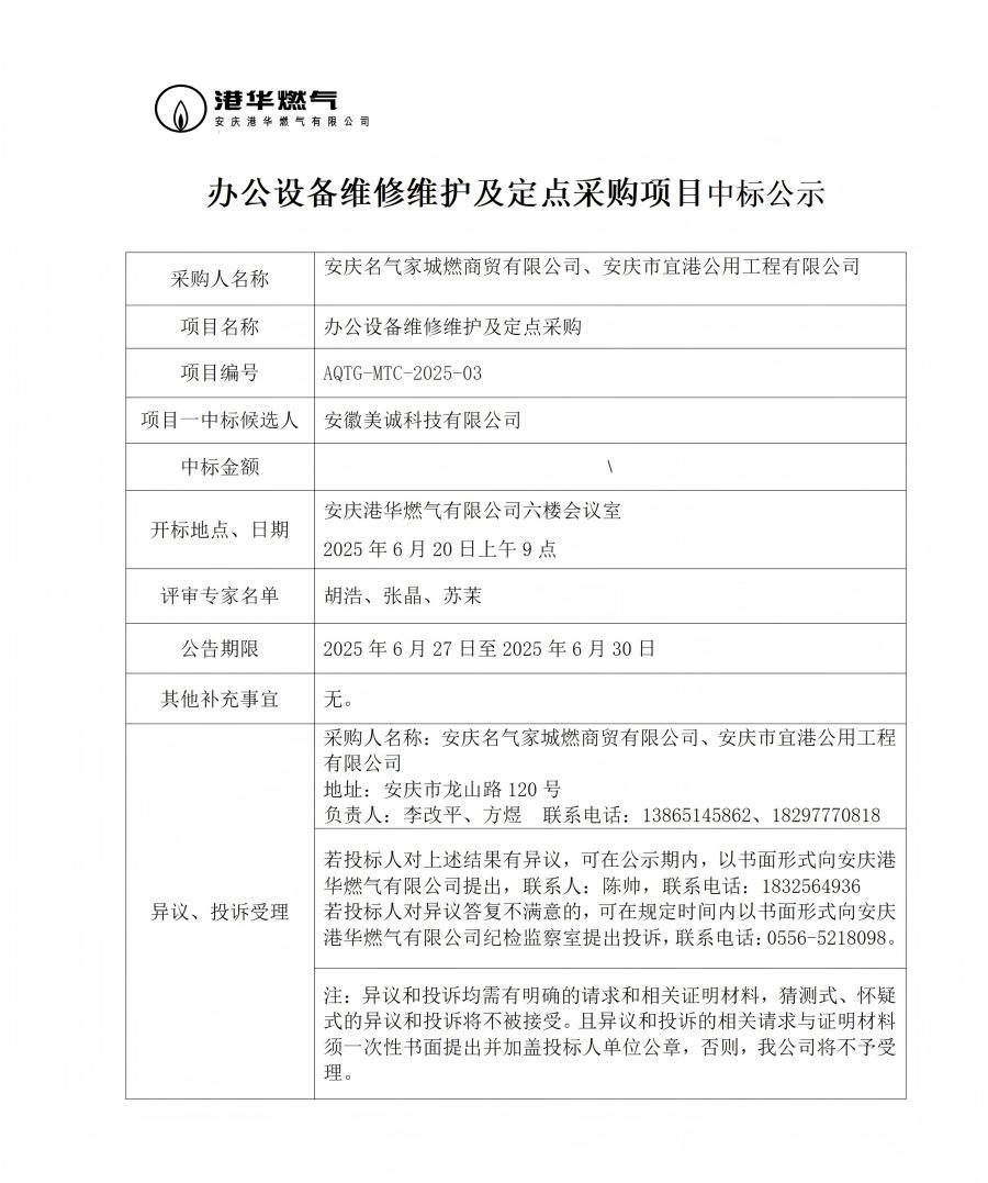 辦公設(shè)備維修維護(hù)及定點(diǎn)采購(gòu)項(xiàng)目中標(biāo)公示